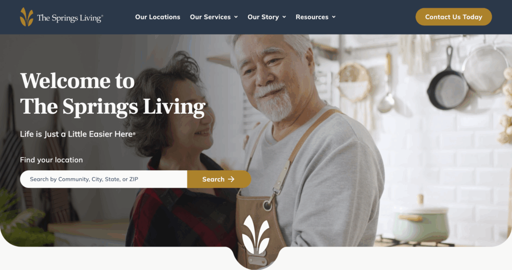 The Springs Living covers broad care on a large site. Apartments with kitchens, trails. 140 units, 4.5 stars. Versatile strong, but size overwhelms some.