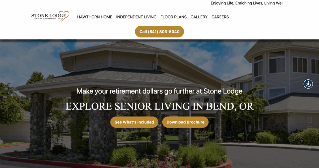 Stone Lodge sits in Bend, OR, offering all-inclusive senior living. This community features chef-prepared meals and daily activities for active residents. Located at 1460 NE 27th Street, it provides easy access to local parks and shops. Seniors enjoy maintenance-free homes with upscale finishes. The facility has spacious bedrooms and ADA-compliant bathrooms. Residents can use the fitness center, library, and movie theater. Pet-friendly policies let furry friends join. Social events foster friendships among neighbors. Staff handles housekeeping and transport, freeing time for hobbies.