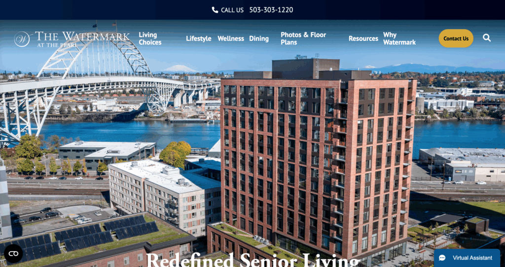 The Watermark at the Pearl, from Watermark Retirement Communities, delivers upscale living in Portland’s trendy Pearl District. Seniors here thrive with art classes, rooftop views, and walks to galleries. The setup suits those who love city energy but want security. Based in Tucson, AZ, the company focuses on luxury and care. Reviews highlight the modern vibe, though parking can be tight.