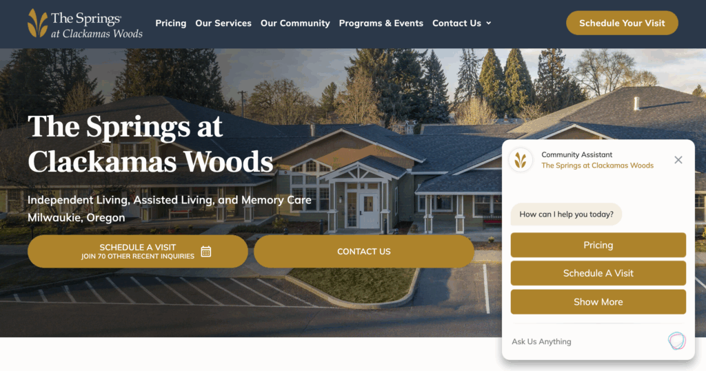 Creekside Village, in Beaverton near Portland, offers creek-side walks and social hours. It’s geared toward relaxed living. Operated locally, it emphasizes neighborly bonds. People like the peace, but urban access takes a drive.