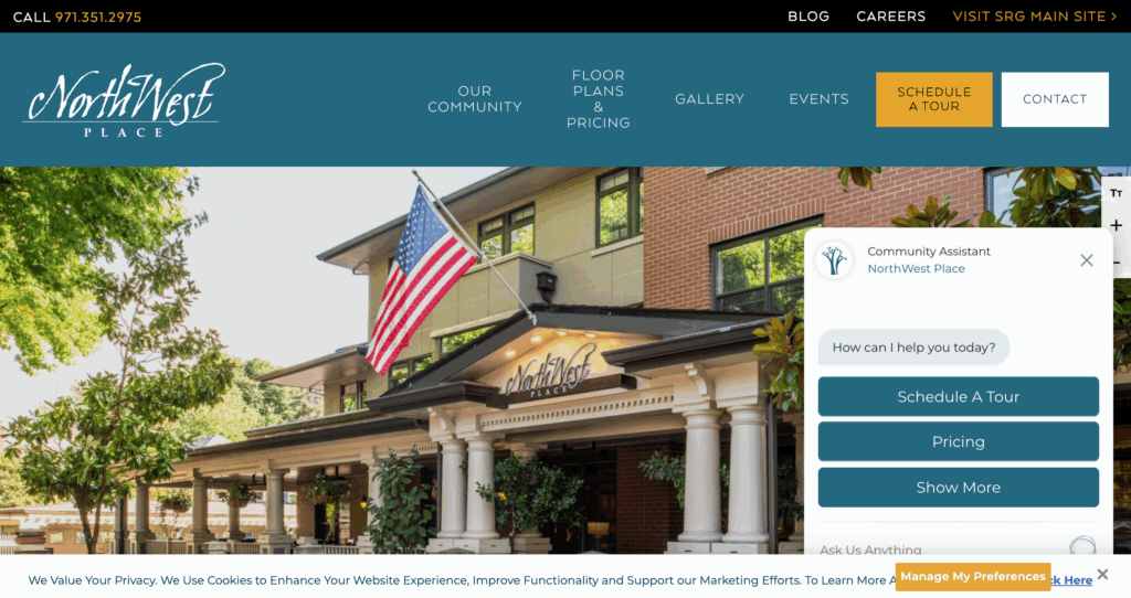 Northwest Place, operated by Senior Resource Group, nestles in northwest Portland with views of forests. It appeals to nature lovers with trails and gardens on-site. The community offers lectures and trips to cultural sites. Headquartered in Solana Beach, CA, SRG prioritizes vibrant lifestyles. Users appreciate the calm, but some wish for more evening events.