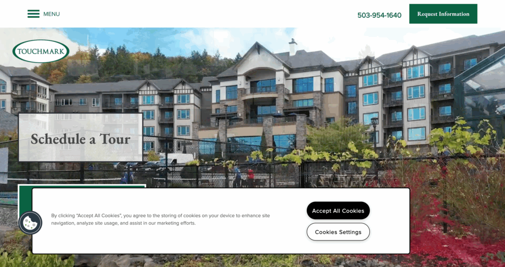 Touchmark in the West Hills, by Touchmark, overlooks Portland from a hilltop spot. It features gourmet meals and adventure trips. The design suits explorers with fitness trails. Headquartered in Beaverton, OR, Touchmark stresses vitality. Reviews love the views, though hills can challenge mobility.